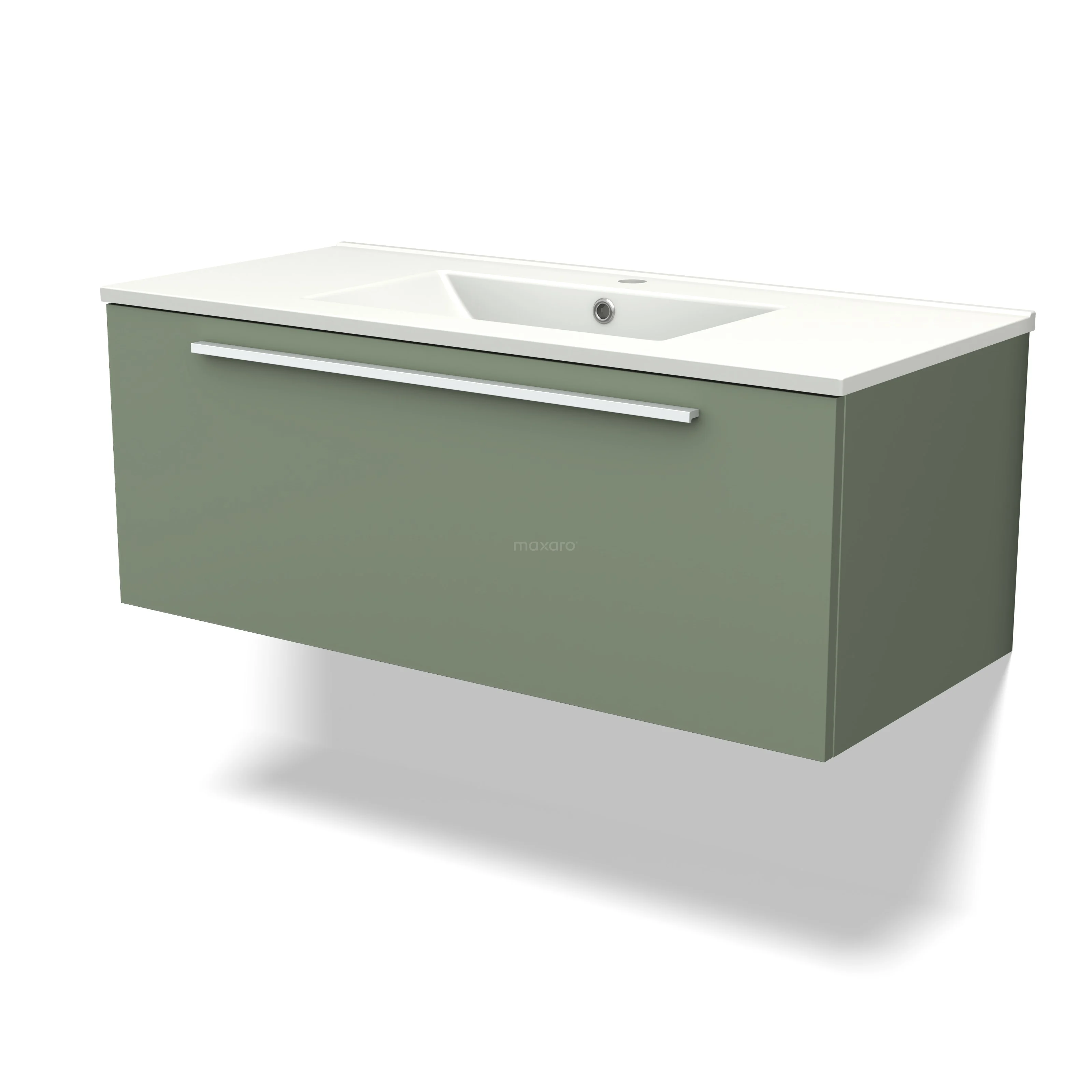 Modulo Bathroom furniture with sink | 100 cm Sage green Flat front Ceramic 1 drawer