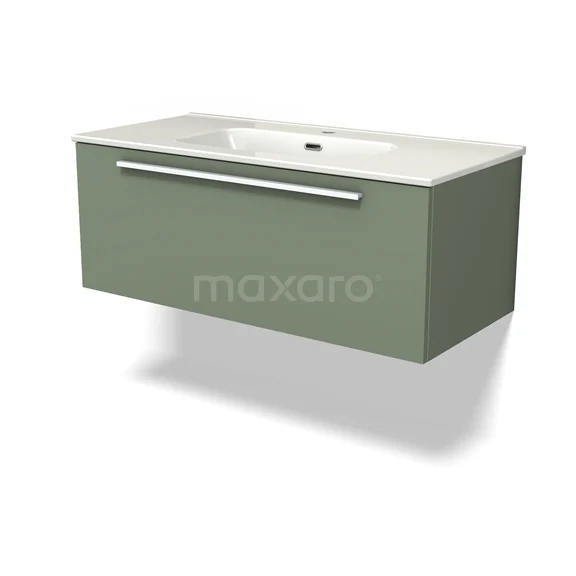 Modulo Bathroom furniture with sink | 100 cm Sage green Flat front Ceramic 1 drawer