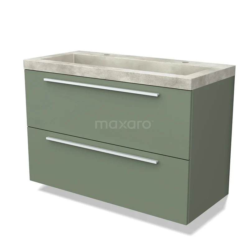 Modulo Bathroom furniture with sink | 100 cm Sage green Flat front Concrete 2 Stacked drawers