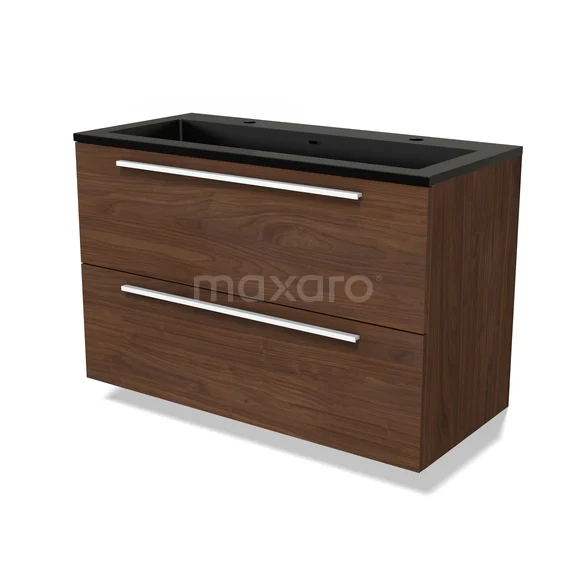 Modulo Bathroom furniture with sink | 100 cm Walnut Flat front Quartz 2 Stacked drawers