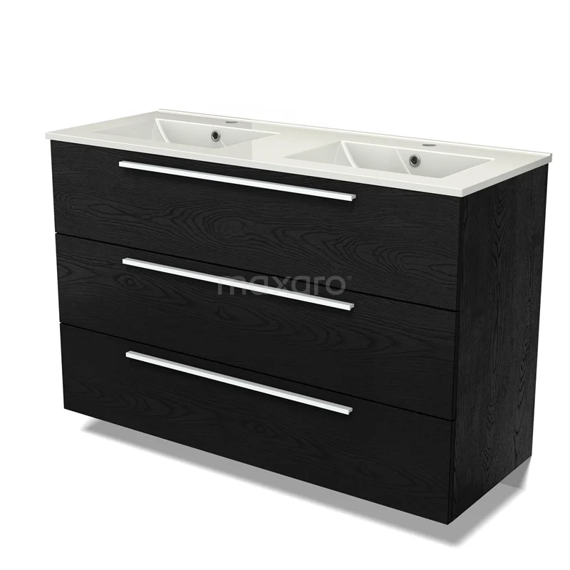 Modulo Bathroom furniture with sink | 120 cm Black oak Flat front Ceramic 3 drawers