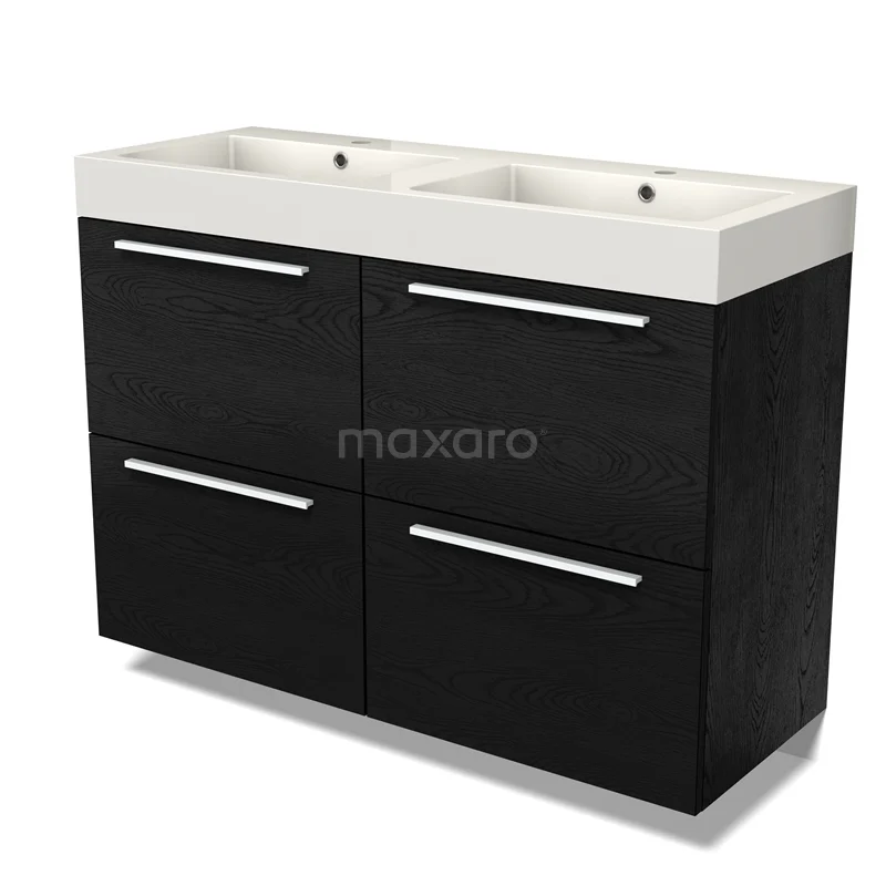 Modulo Bathroom furniture with sink | 120 cm Black oak Flat front Mineral marble 4 high drawers