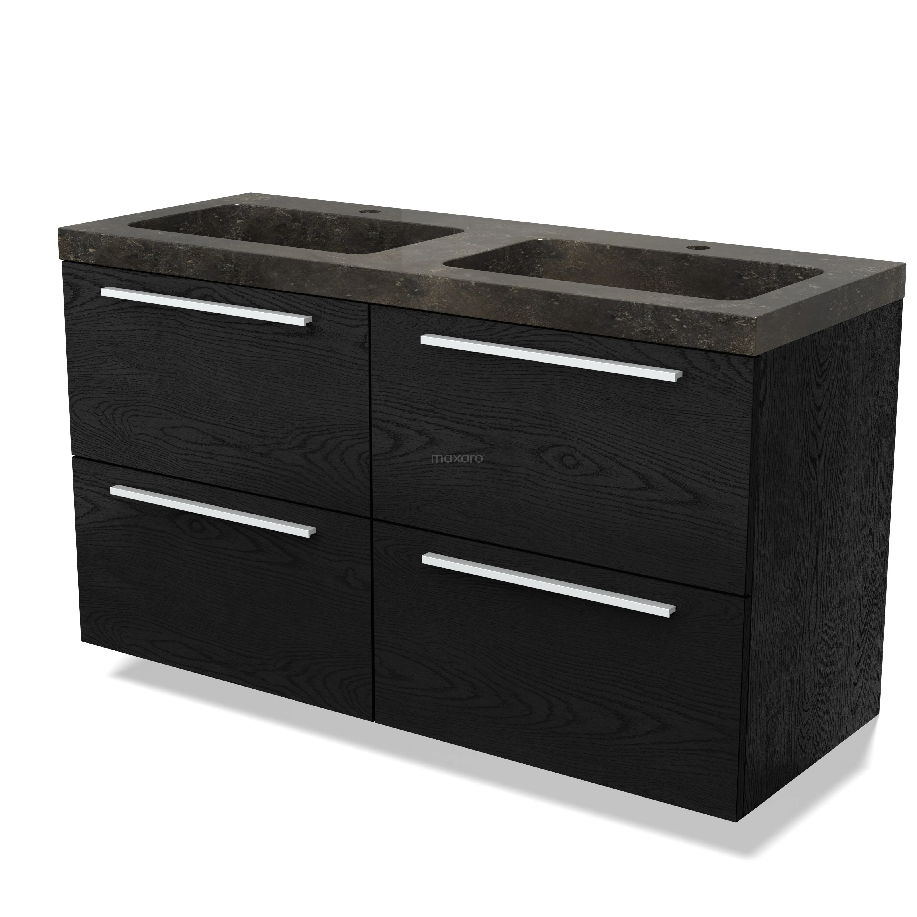 Modulo Bathroom furniture with sink | 120 cm Black oak Flat front Natural stone 4 drawers