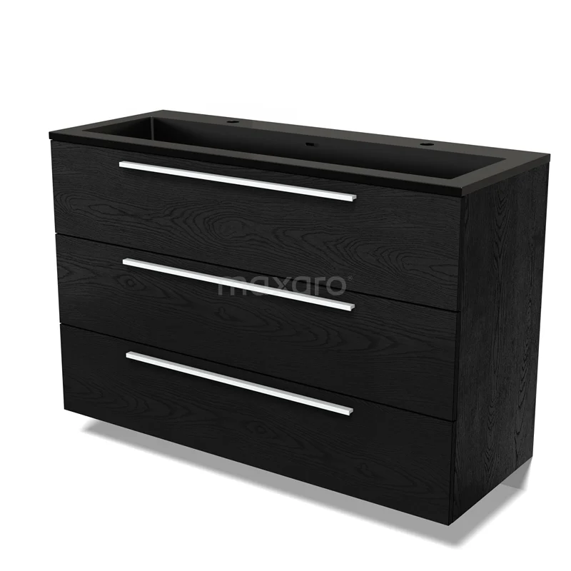 Modulo Bathroom furniture with sink | 120 cm Black oak Flat front Quartz 3 drawers
