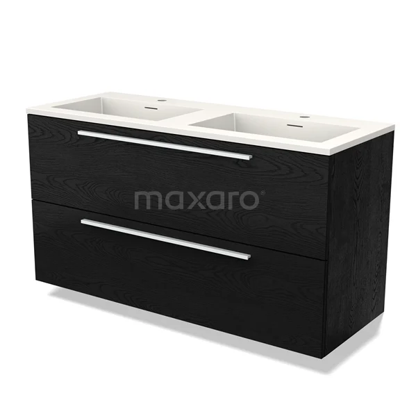 Modulo Bathroom furniture with sink | 120 cm Black oak Flat front Solid surface 2 Stacked drawers