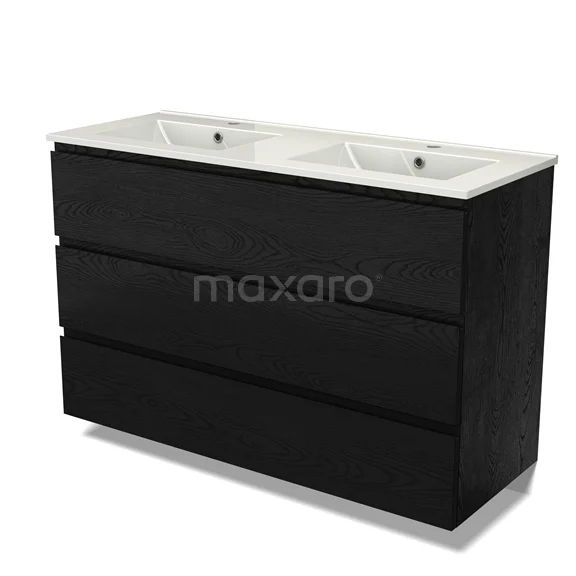 Modulo Bathroom furniture with sink | 120 cm Black oak Handle-less front Ceramic 3 drawers