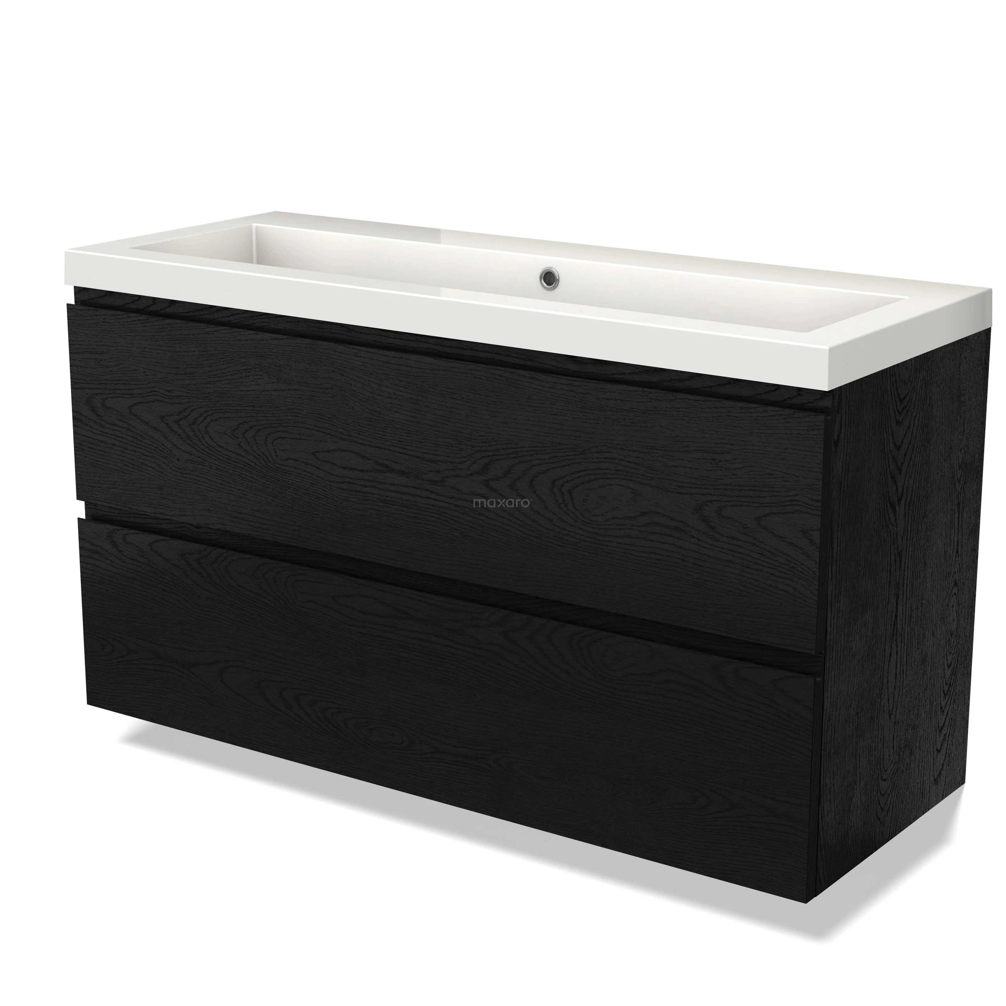 Modulo Bathroom furniture with sink | 120 cm Black oak Handle-less front Mineral marble 2 Stacked drawers