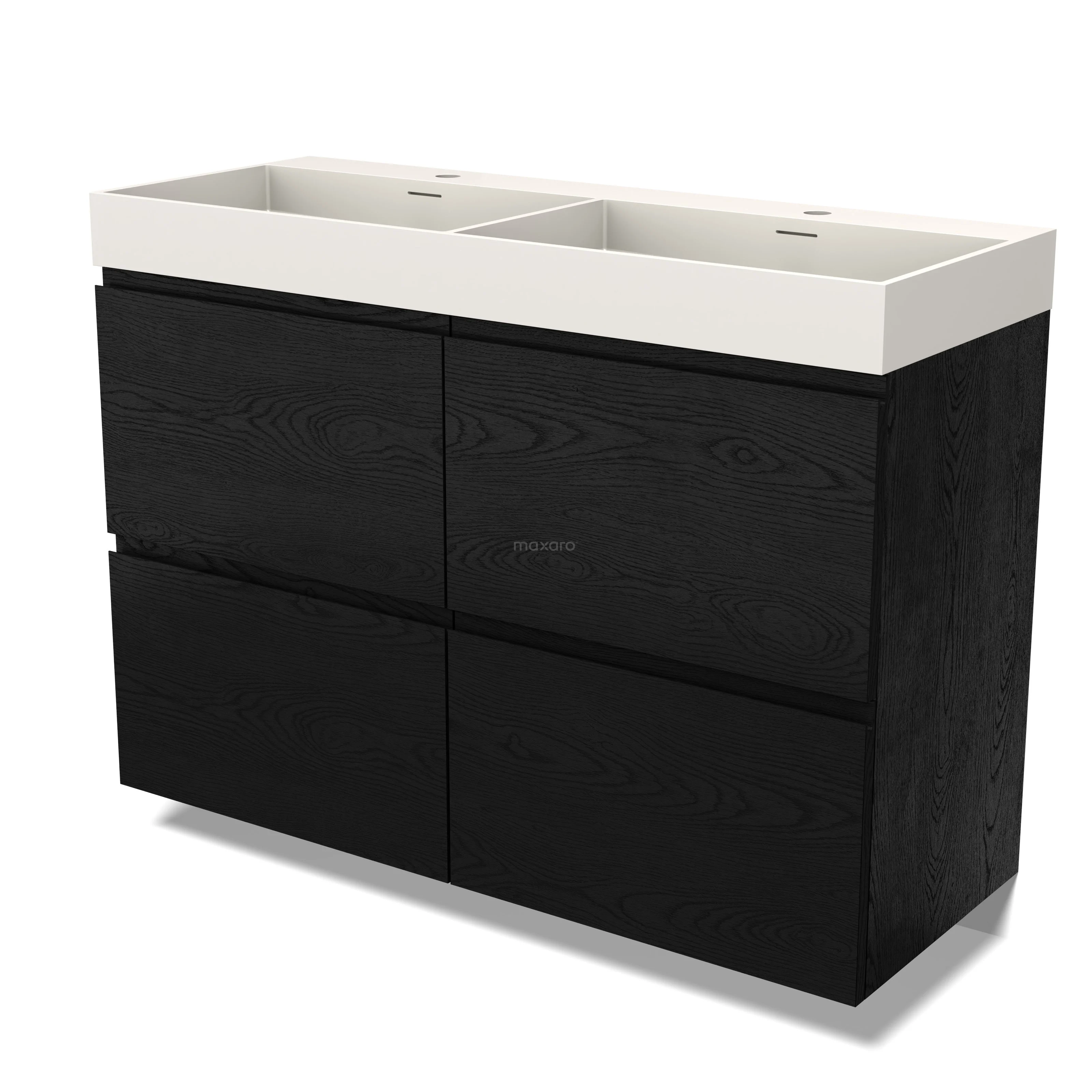 Modulo Bathroom furniture with sink | 120 cm Black oak Handle-less front Solid surface 4 high drawers
