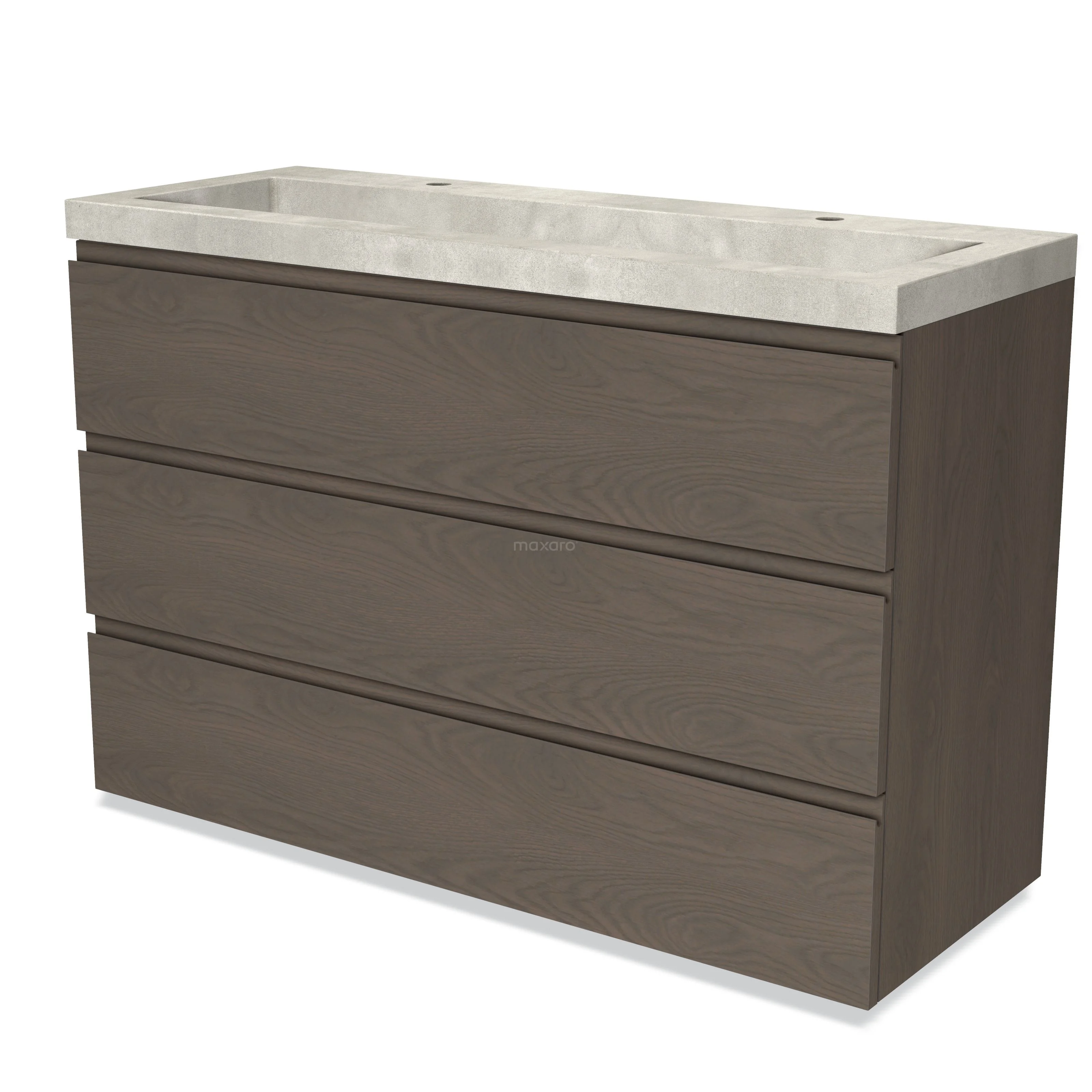Modulo Bathroom furniture with sink | 120 cm Dark brown oak Handle-less front Concrete 3 drawers