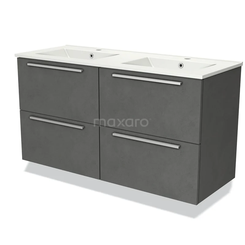 Modulo Bathroom furniture with sink | 120 cm Dark grey concrete Flat front Ceramic 4 drawers
