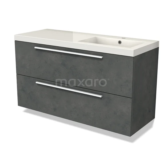 Modulo Bathroom furniture with sink | 120 cm Dark grey concrete Flat front Mineral marble 2 Stacked drawers