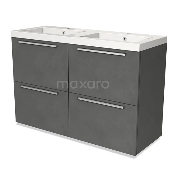 Modulo Bathroom furniture with sink | 120 cm Dark grey concrete Flat front Mineral marble 4 high drawers