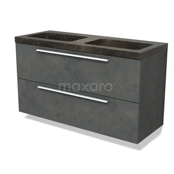 Modulo Bathroom furniture with sink | 120 cm Dark grey concrete Flat front Natural stone 2 Stacked drawers