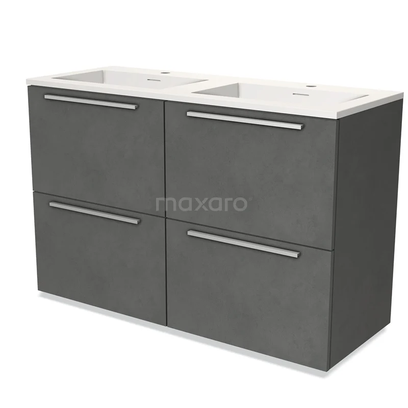 Modulo Bathroom furniture with sink | 120 cm Dark grey concrete Flat front Solid surface 4 high drawers
