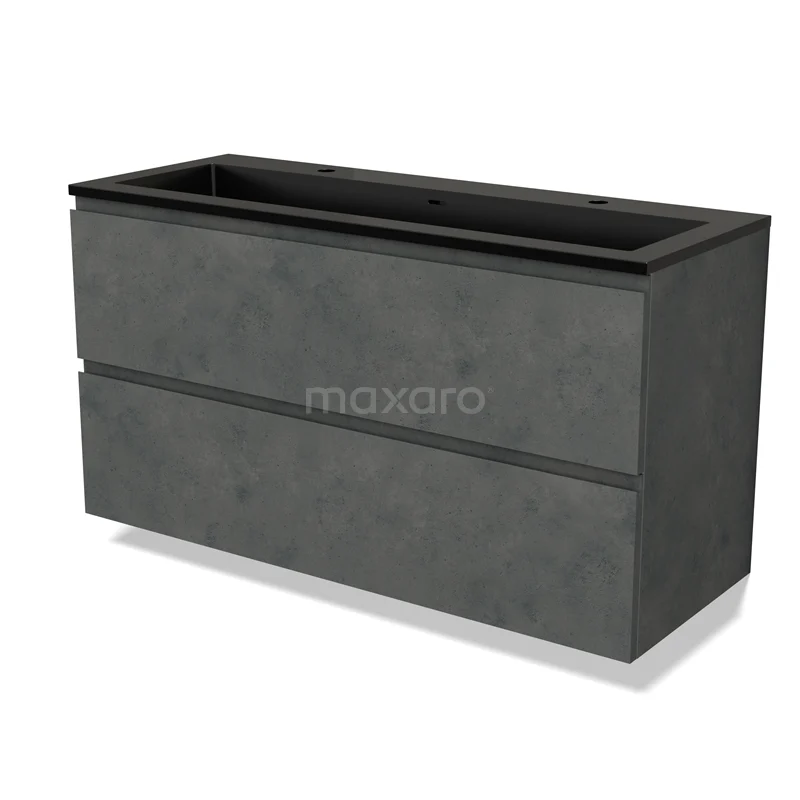 Modulo Bathroom furniture with sink | 120 cm Dark grey concrete Handle-less front Quartz 2 Stacked drawers