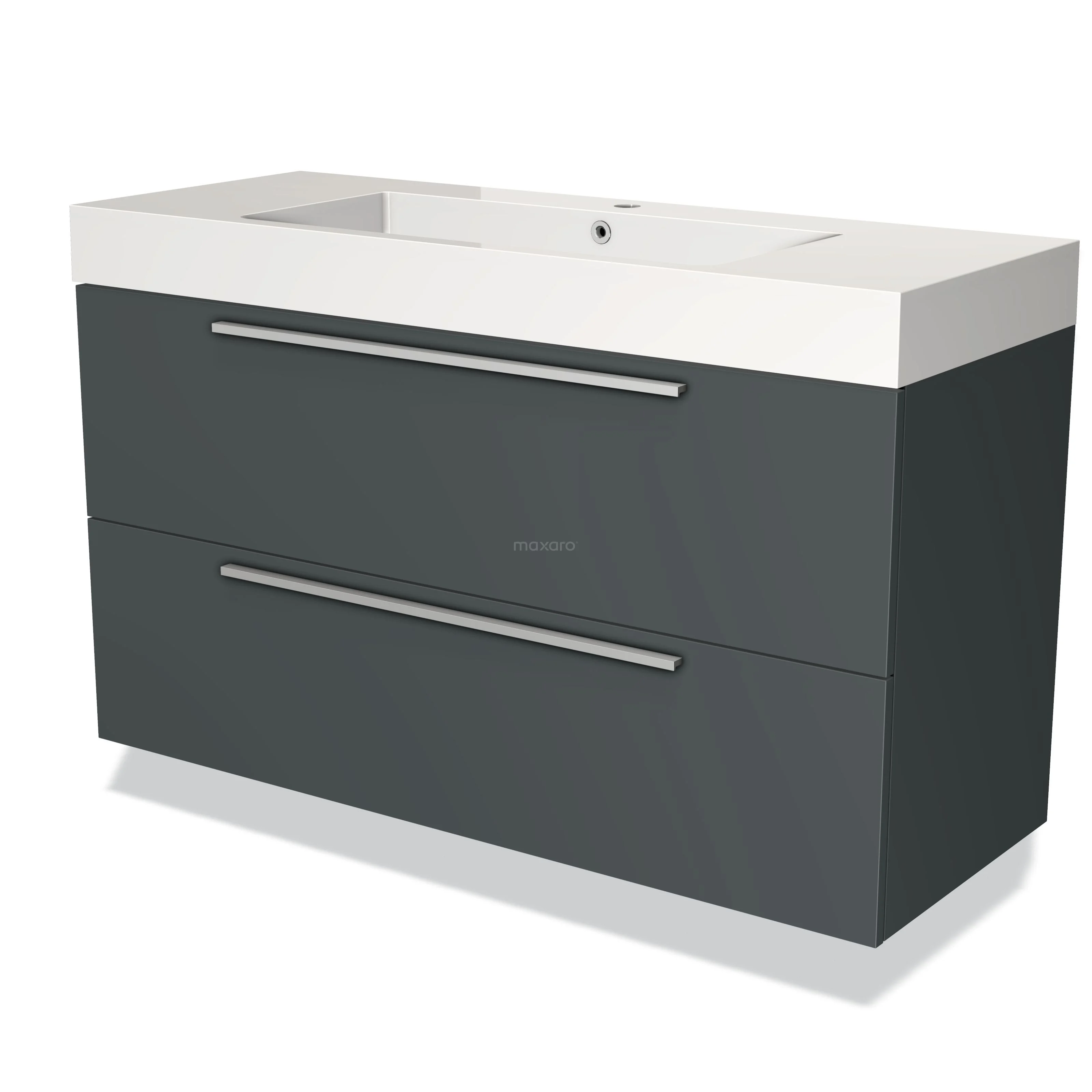 Modulo Bathroom furniture with sink | 120 cm Dark grey Flat front Mineral marble 2 Stacked drawers