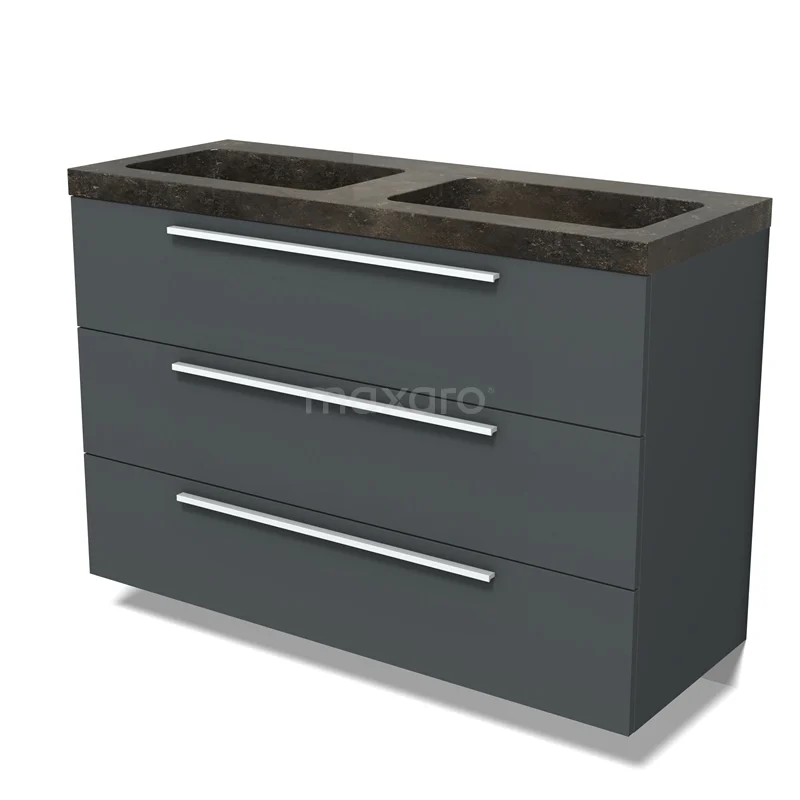Modulo Bathroom furniture with sink | 120 cm Dark grey Flat front Natural stone 3 drawers
