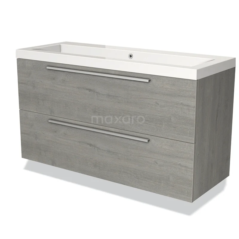 Modulo Bathroom furniture with sink | 120 cm Grey oak Flat front Mineral marble 2 Stacked drawers