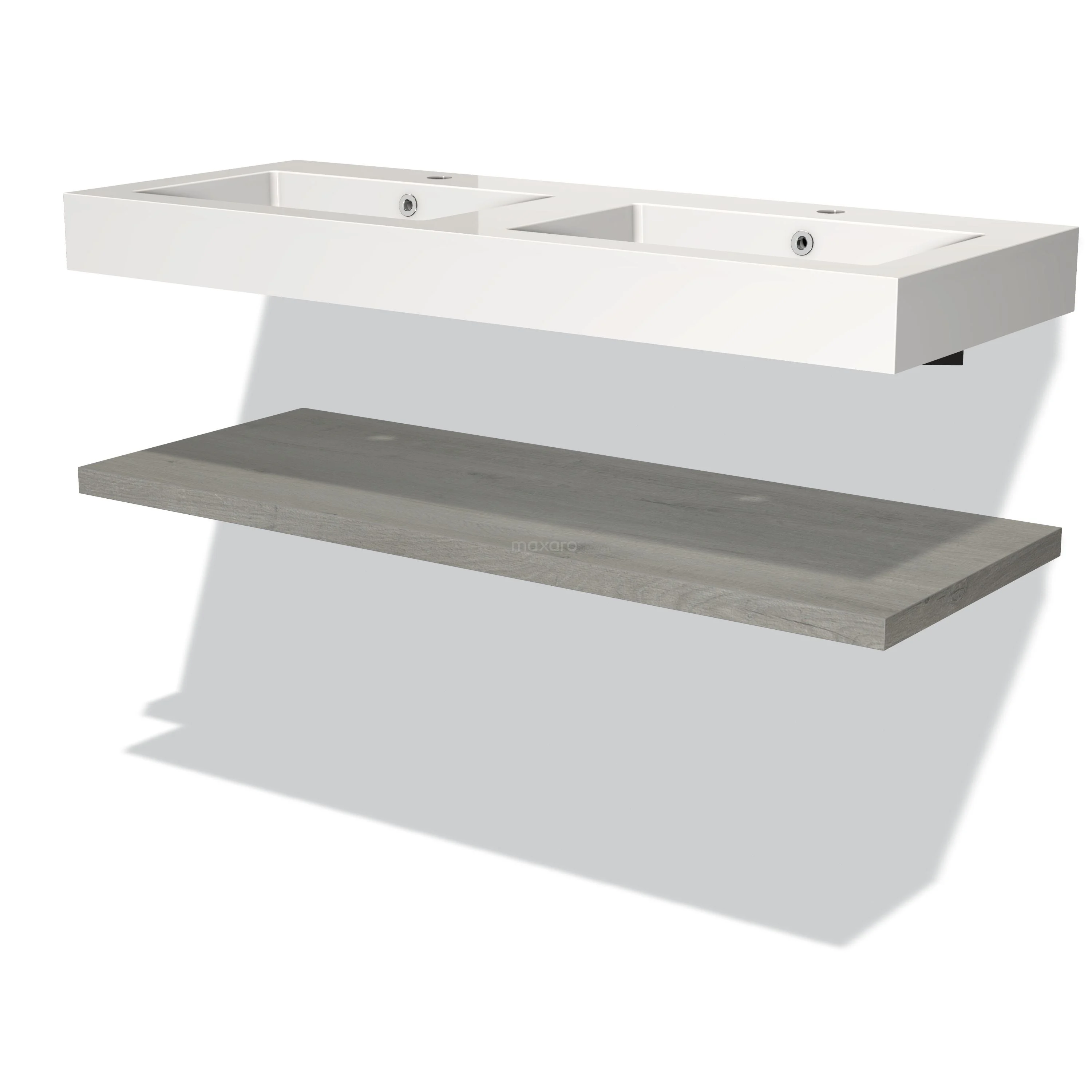 Stylish design Thanks to its beautiful design, this bathroom unit will be the eye-catcher of your bathroom. The basin worktop is finished in grey oak. This oak look has a natural appearance and is an atmospheric addition to your bathroom interior. The white Basin adds a fresh touch.