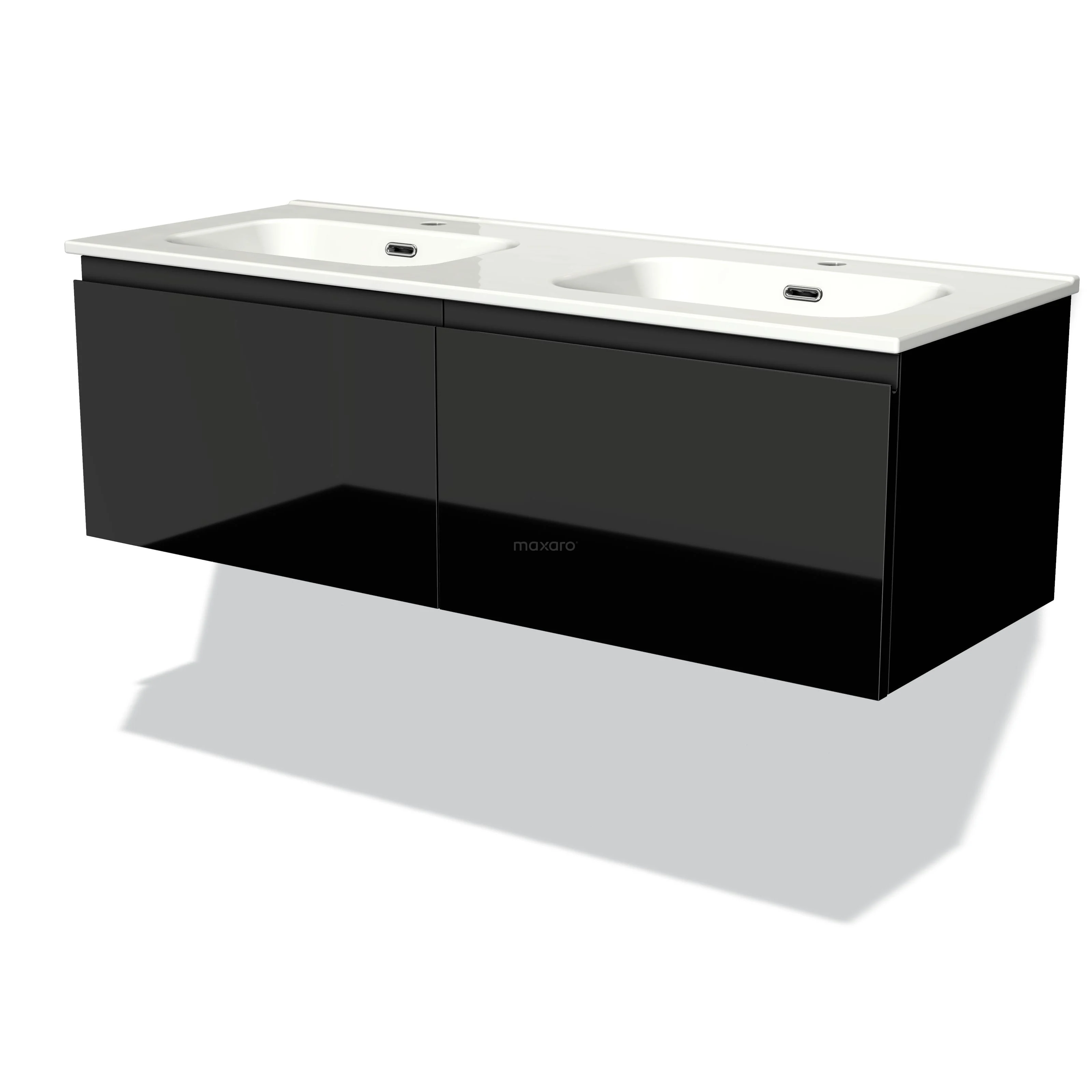 Modulo Bathroom furniture with sink | 120 cm High-gloss black Handle-less front Ceramic 2 Side-by-side drawers