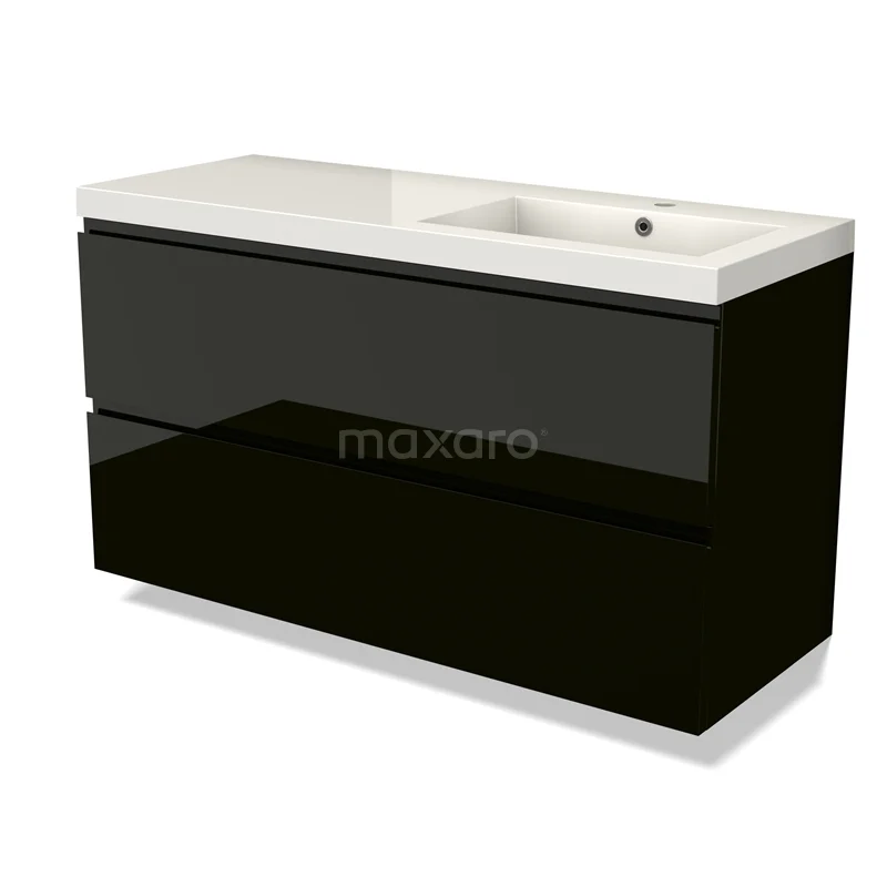 Modulo Bathroom furniture with sink | 120 cm High-gloss black Handle-less front Mineral marble 2 Stacked drawers