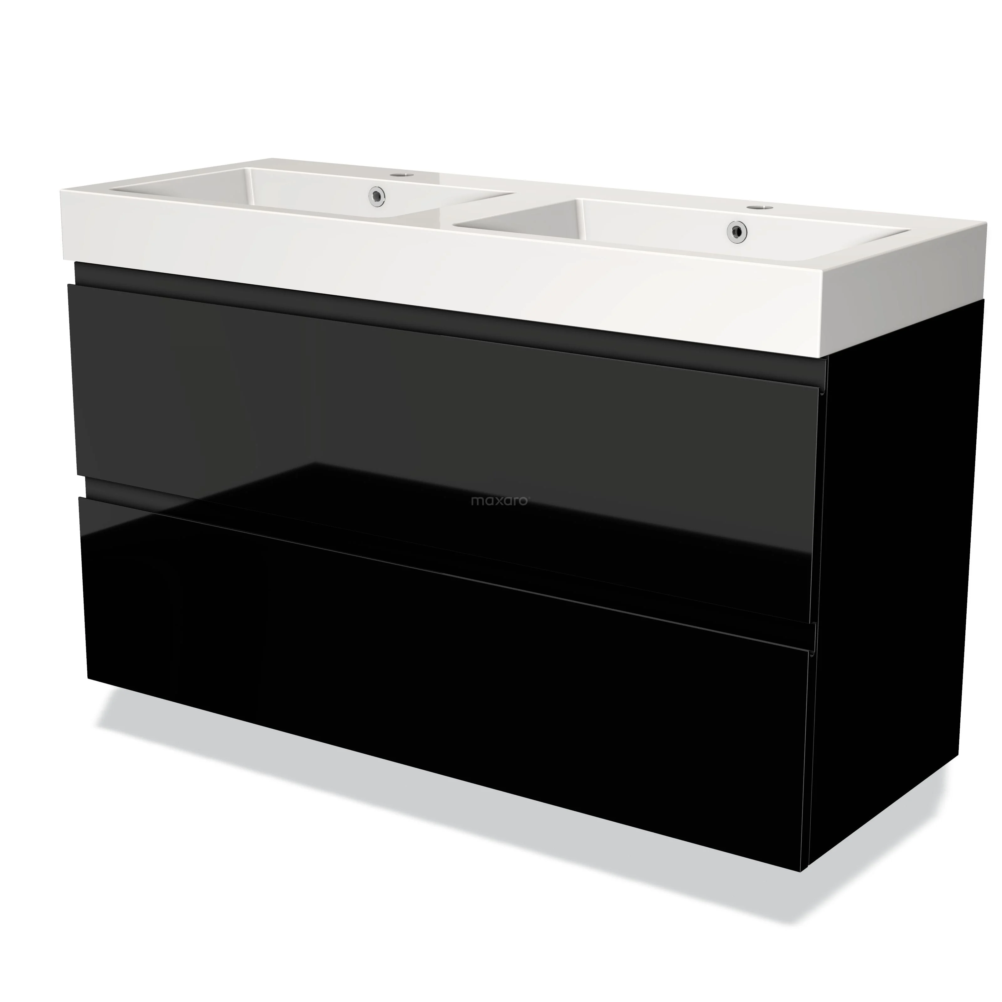 Modulo Bathroom furniture with sink | 120 cm High-gloss black Handle-less front Mineral marble 2 Stacked drawers