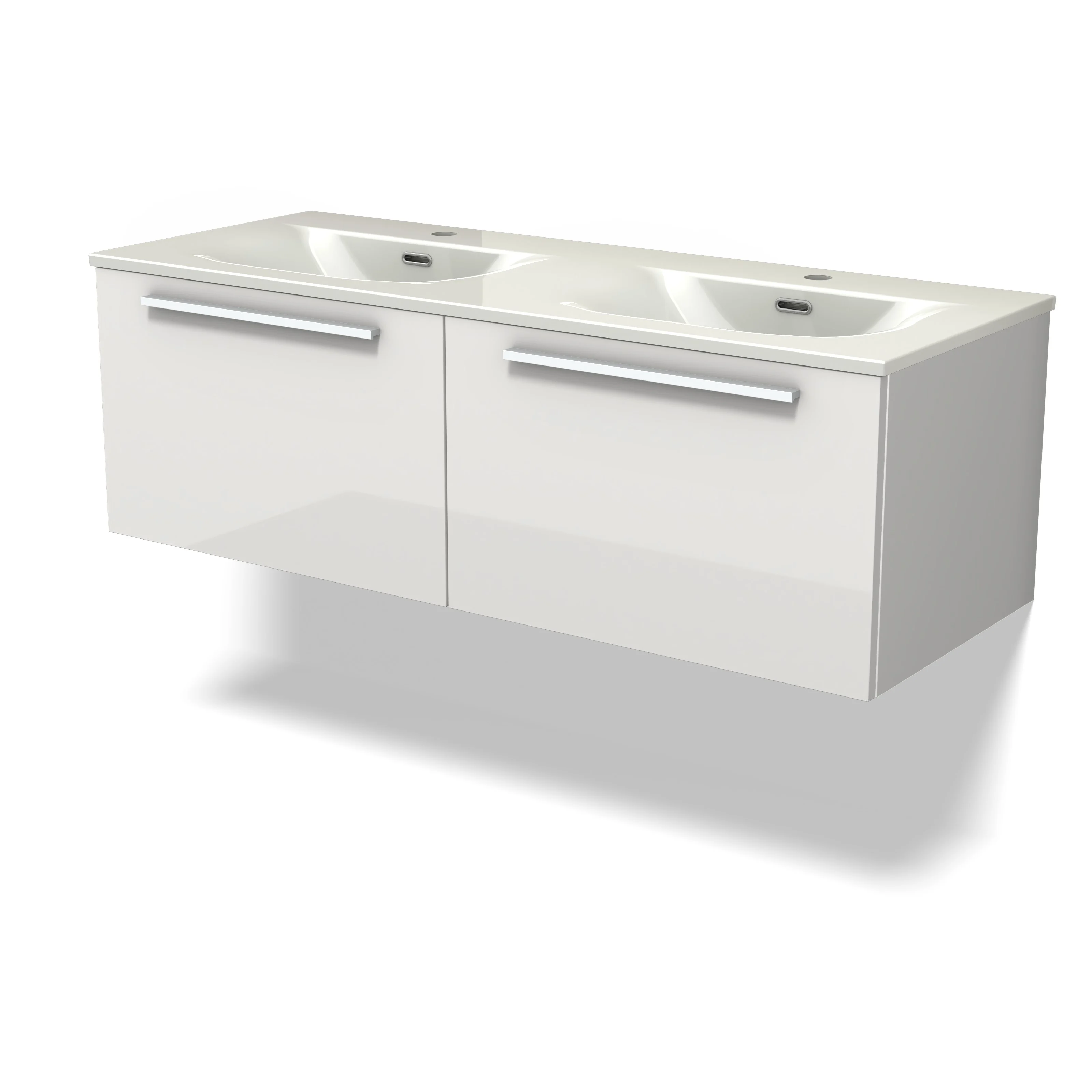 Modulo Bathroom furniture with sink | 120 cm High-gloss white Flat front Ceramic 2 Side-by-side drawers