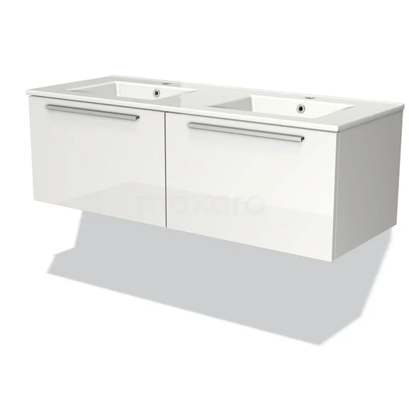 Modulo Bathroom furniture with sink | 120 cm High-gloss white Flat front Ceramic 2 Side-by-side drawers
