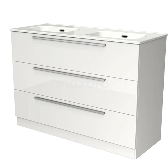 Modulo Bathroom furniture with sink | 120 cm High-gloss white Flat front Ceramic 3 standing drawers