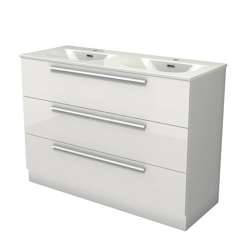 Modulo Bathroom furniture with sink | 120 cm High-gloss white Flat front Ceramic 3 standing drawers