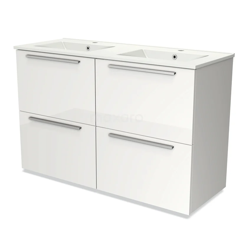 Modulo Bathroom furniture with sink | 120 cm High-gloss white Flat front Ceramic 4 high drawers