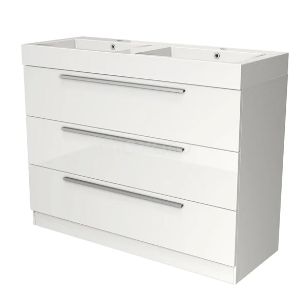 Stylish design The stylish design makes this bathroom unit the eye-catcher of your bathroom. The base cabinet features a flat front and has a high-gloss white finish. This colour has a modern appeal and gives the unit a fresh look and feel. In addition, the flat front provides a timeless touch.