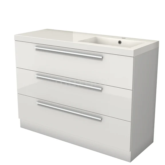 Modulo Bathroom furniture with sink | 120 cm High-gloss white Flat front Mineral marble 3 standing drawers