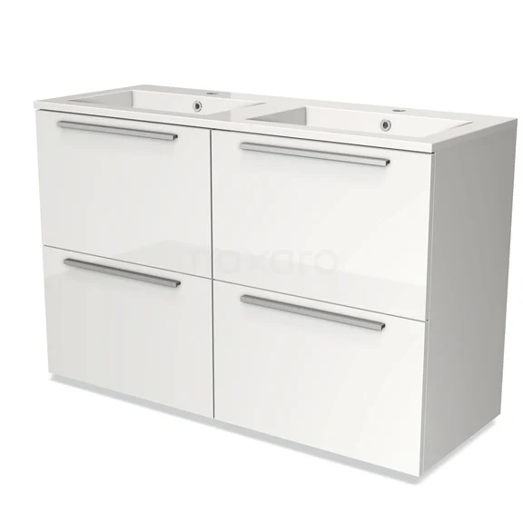 Modulo Bathroom furniture with sink | 120 cm High-gloss white Flat front Mineral marble 4 high drawers