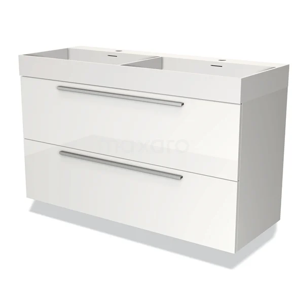 Modulo Bathroom furniture with sink | 120 cm High-gloss white Flat front Solid surface 2 Stacked drawers