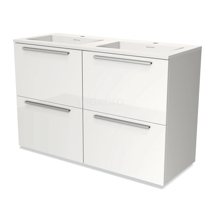 Modulo Bathroom furniture with sink | 120 cm High-gloss white Flat front Solid surface 4 high drawers