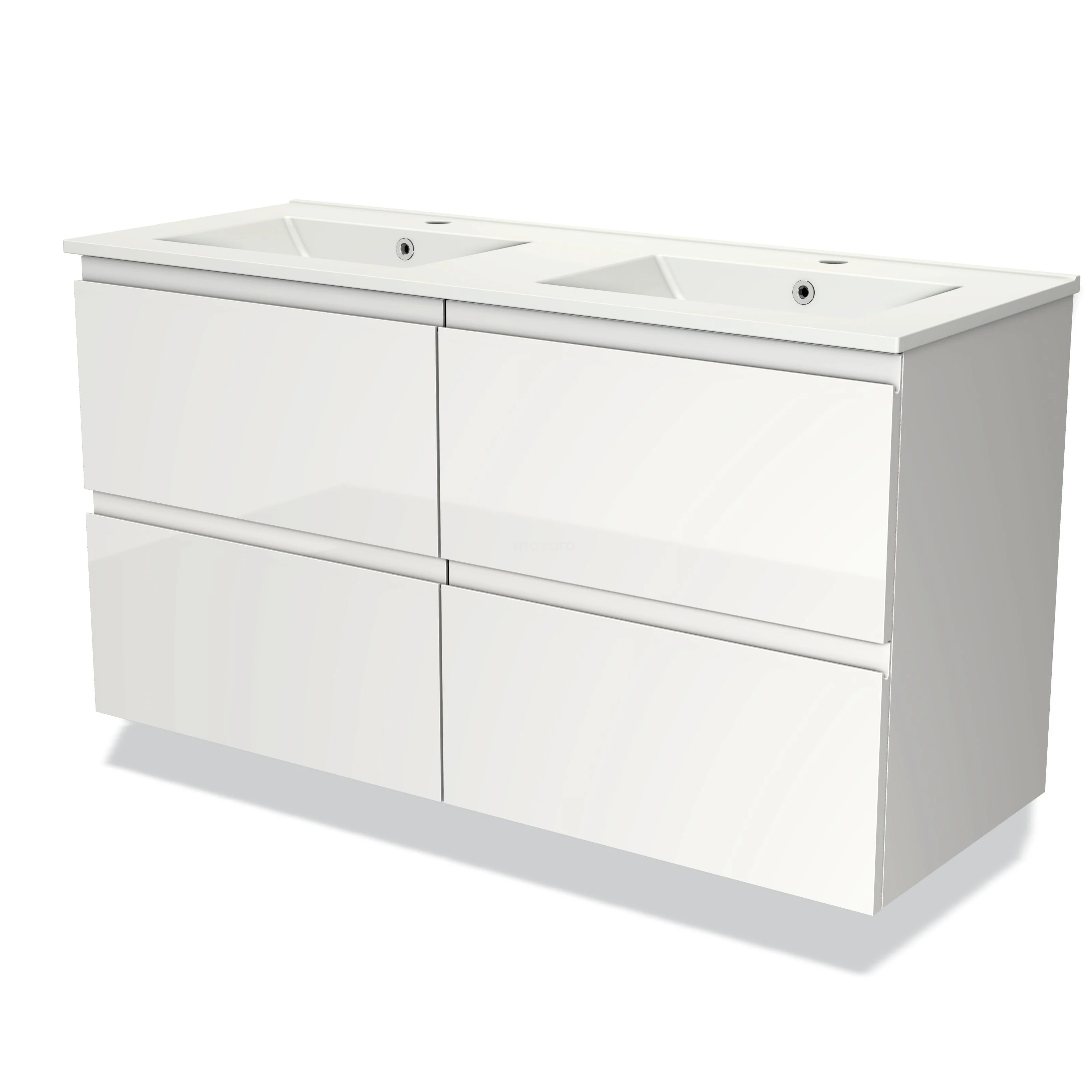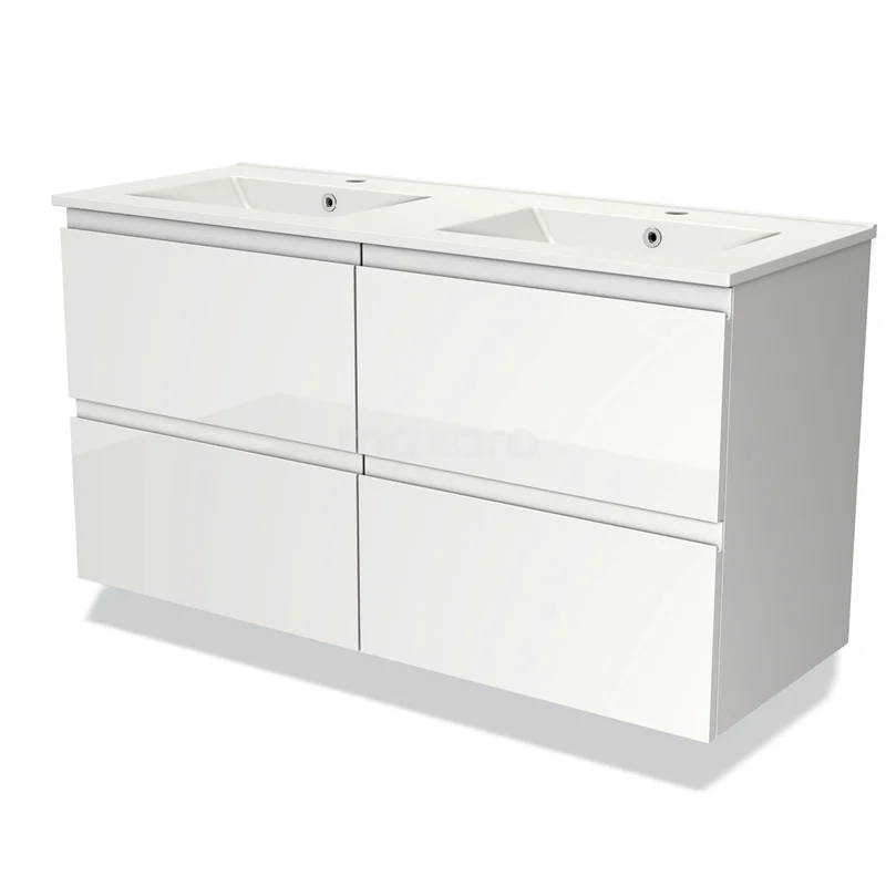 Modulo Bathroom furniture with sink | 120 cm High-gloss white Handle-less front Ceramic 4 drawers