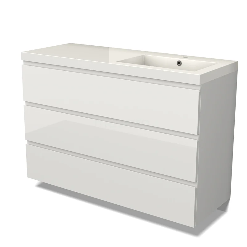 Modulo Bathroom furniture with sink | 120 cm High-gloss white Handle-less front Mineral marble 3 drawers