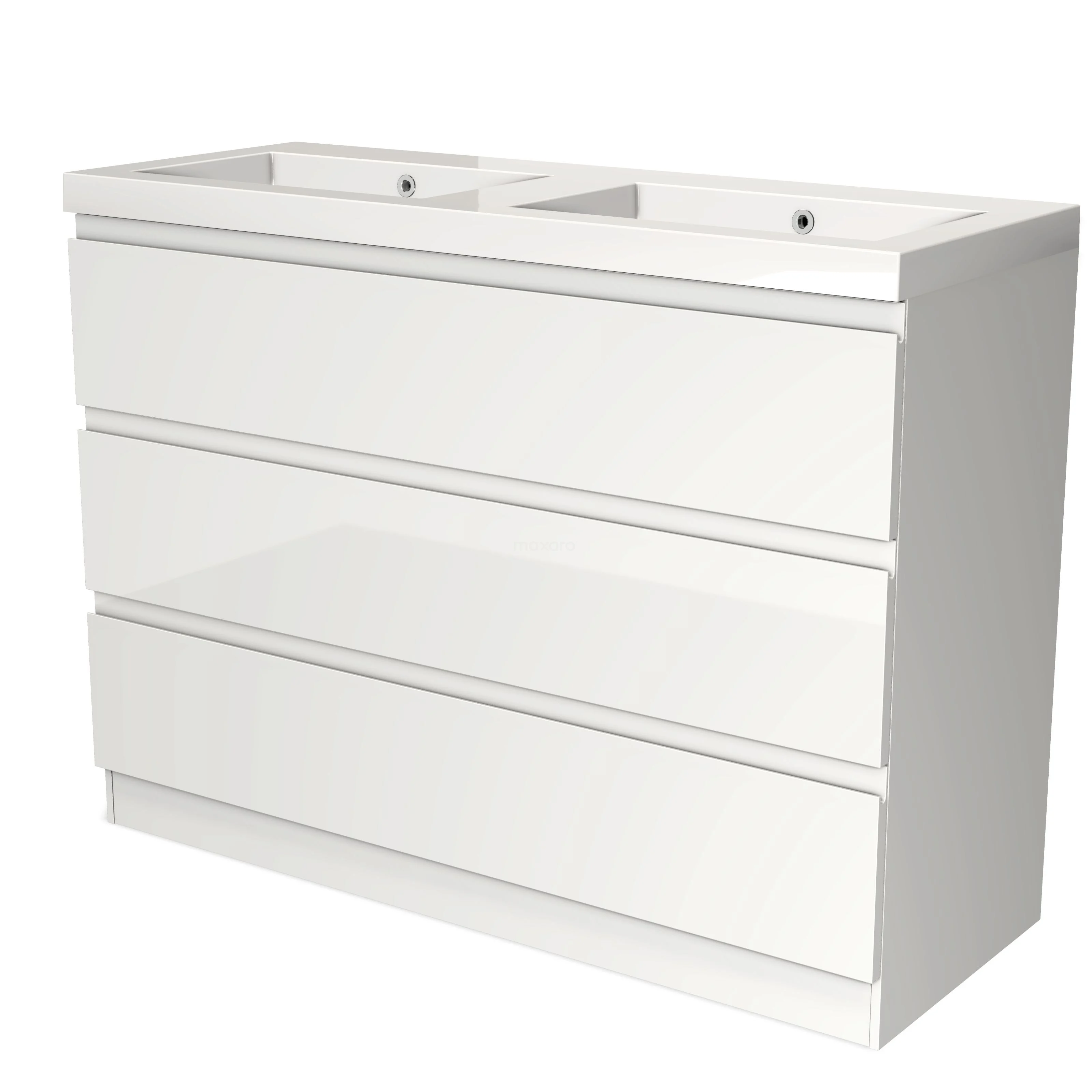 Modulo Bathroom furniture with sink | 120 cm High-gloss white Handle-less front Mineral marble 3 standing drawers