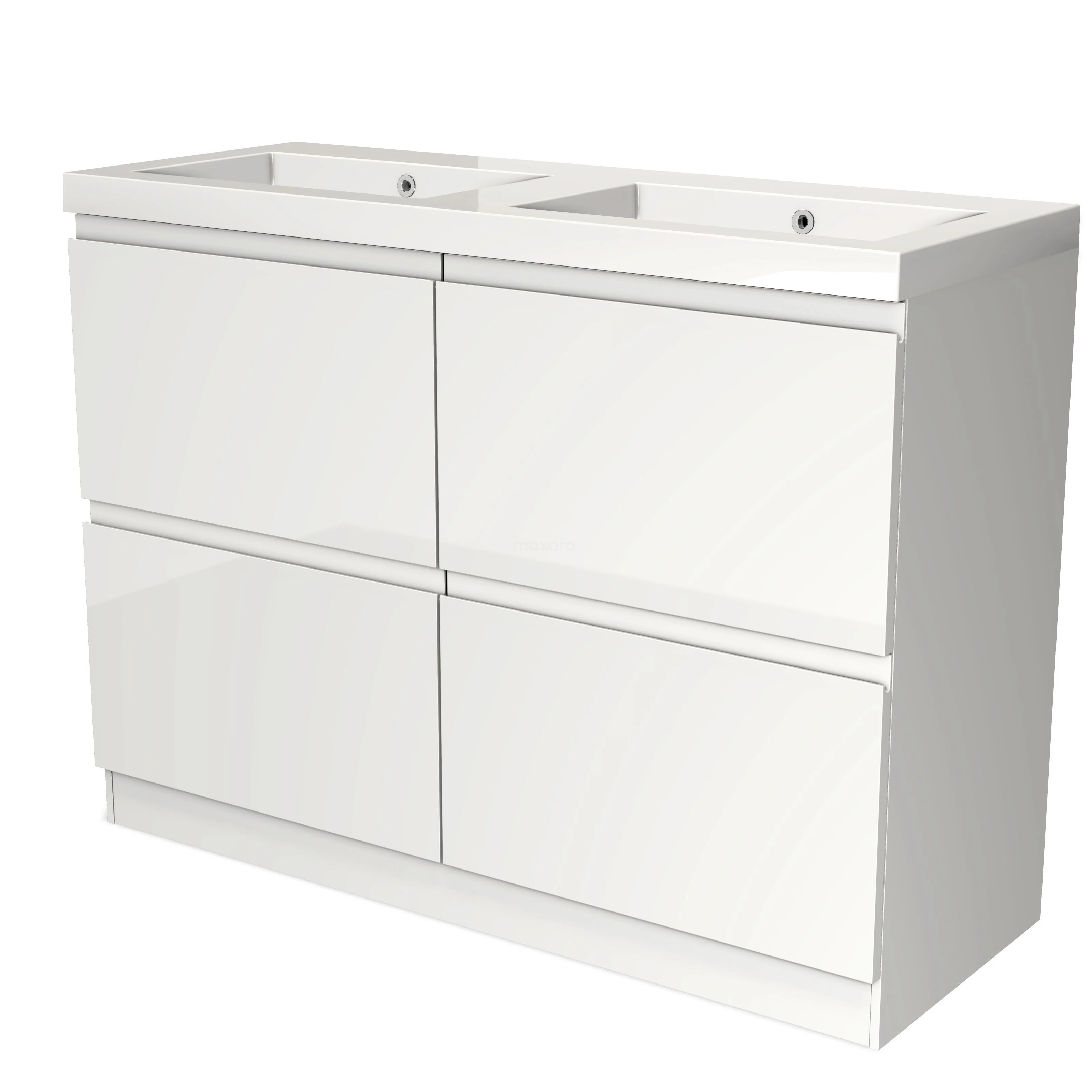 Modulo Bathroom furniture with sink | 120 cm High-gloss white Handle-less front Mineral marble 4 standing high drawers
