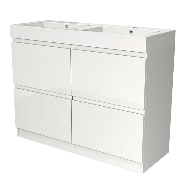 Modulo Bathroom furniture with sink | 120 cm High-gloss white Handle-less front Mineral marble 4 standing high drawers