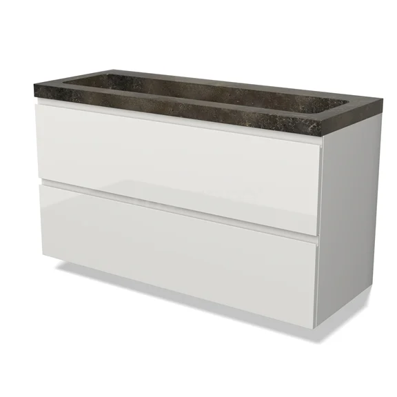 Modulo Bathroom furniture with sink | 120 cm High-gloss white Handle-less front Natural stone 2 Stacked drawers