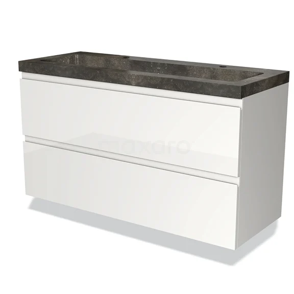 Modulo Bathroom furniture with sink | 120 cm High-gloss white Handle-less front Natural stone 2 Stacked drawers