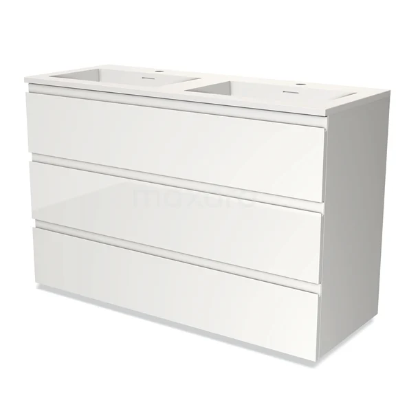 Modulo Bathroom furniture with sink | 120 cm High-gloss white Handle-less front Solid surface 3 drawers