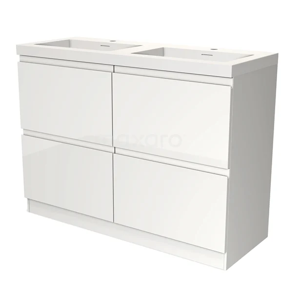 Modulo Bathroom furniture with sink | 120 cm High-gloss white Handle-less front Solid surface 4 standing high drawers