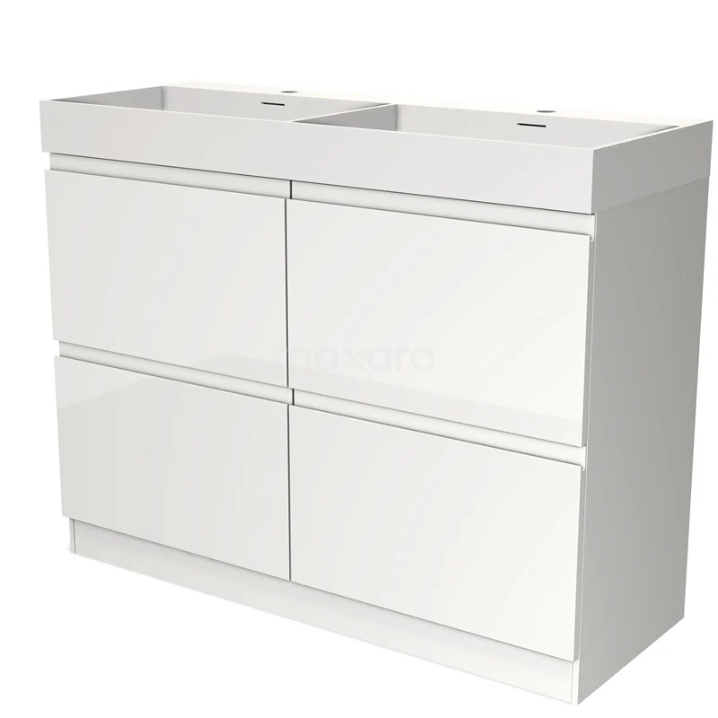 Modulo Bathroom furniture with sink | 120 cm High-gloss white Handle-less front Solid surface 4 standing high drawers