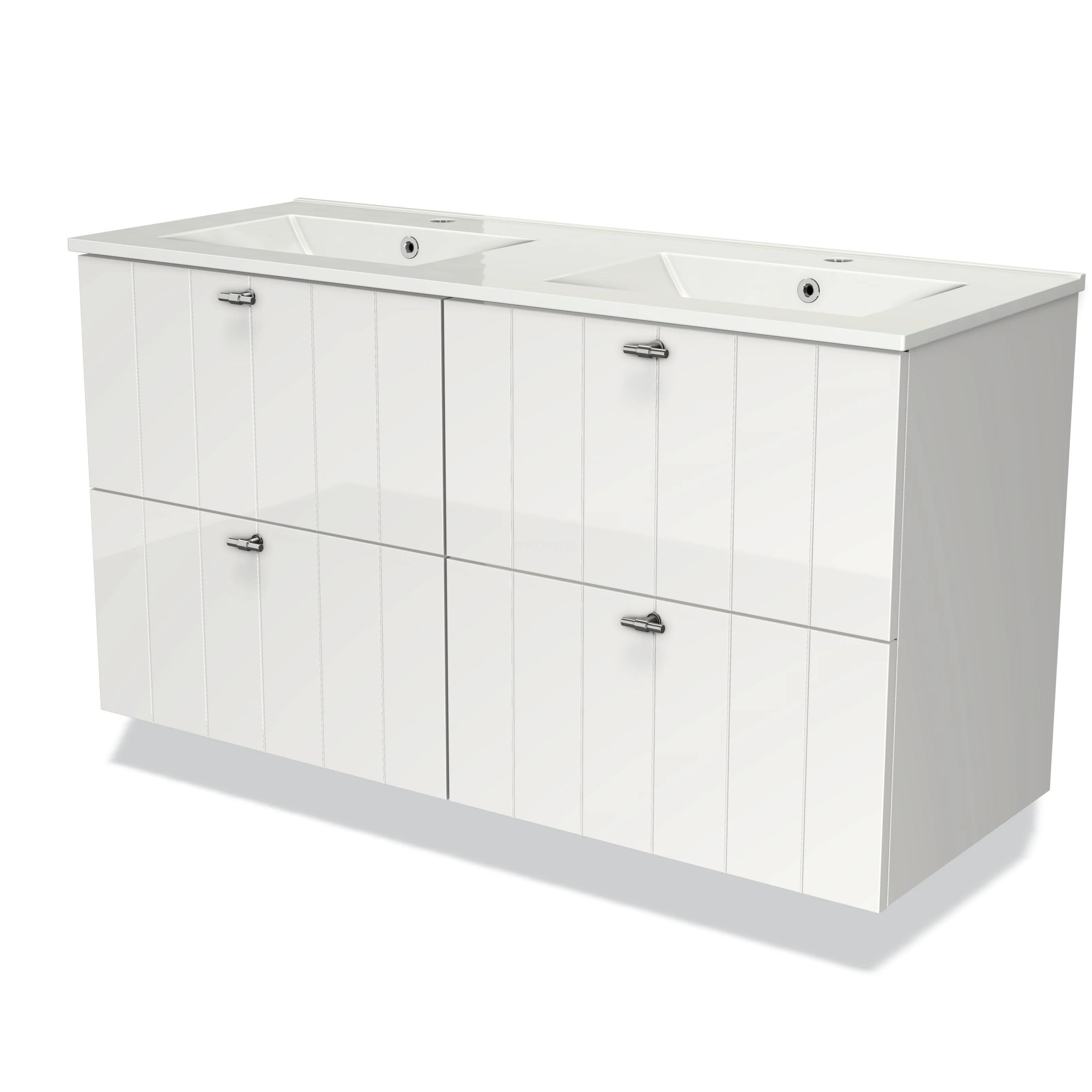 Modulo Bathroom furniture with sink | 120 cm High-gloss white Slat front Ceramic 4 drawers