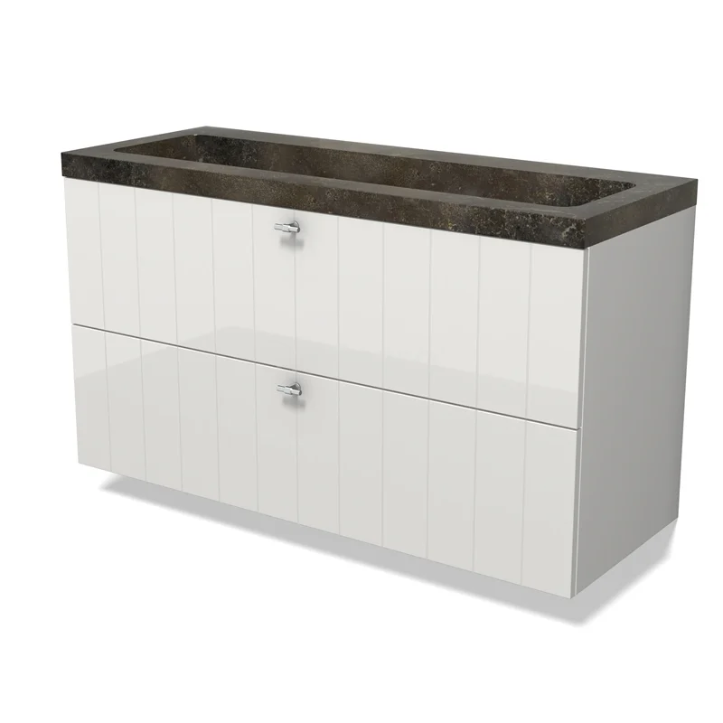 Modulo Bathroom furniture with sink | 120 cm High-gloss white Slat front Natural stone 2 Stacked drawers
