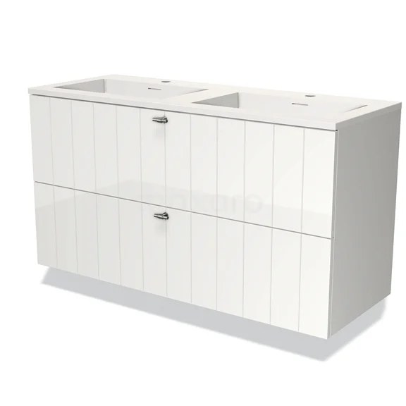 Modulo Bathroom furniture with sink | 120 cm High-gloss white Slat front Solid surface 2 Stacked drawers