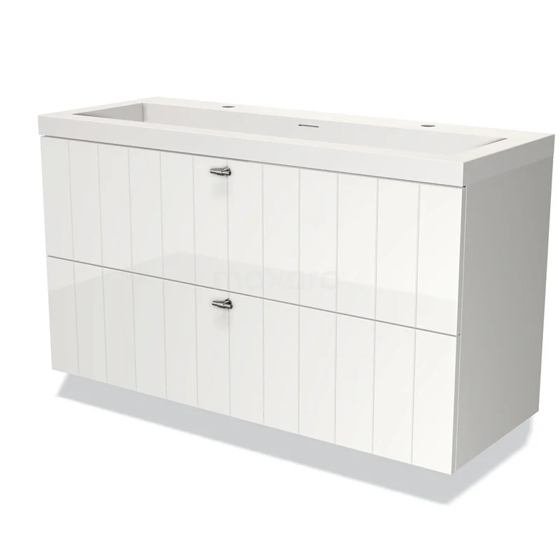 Modulo Bathroom furniture with sink | 120 cm High-gloss white Slat front Solid surface 2 Stacked drawers